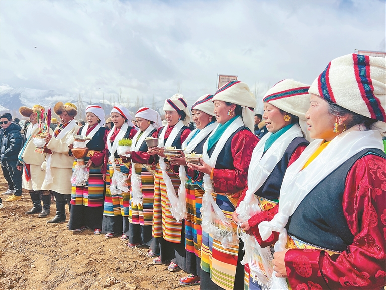 春耕春播仪式上,村民们高举青稞酒,唱响吉祥歌,祈愿五谷满仓、农事顺遂。记者 央金 摄 小朋友观看春耕春播仪式。(图片由林周融媒提供) 春耕春播仪式上,村民手持糌粑,祈愿五谷丰登、青稞丰收。(图片由林周融媒提...