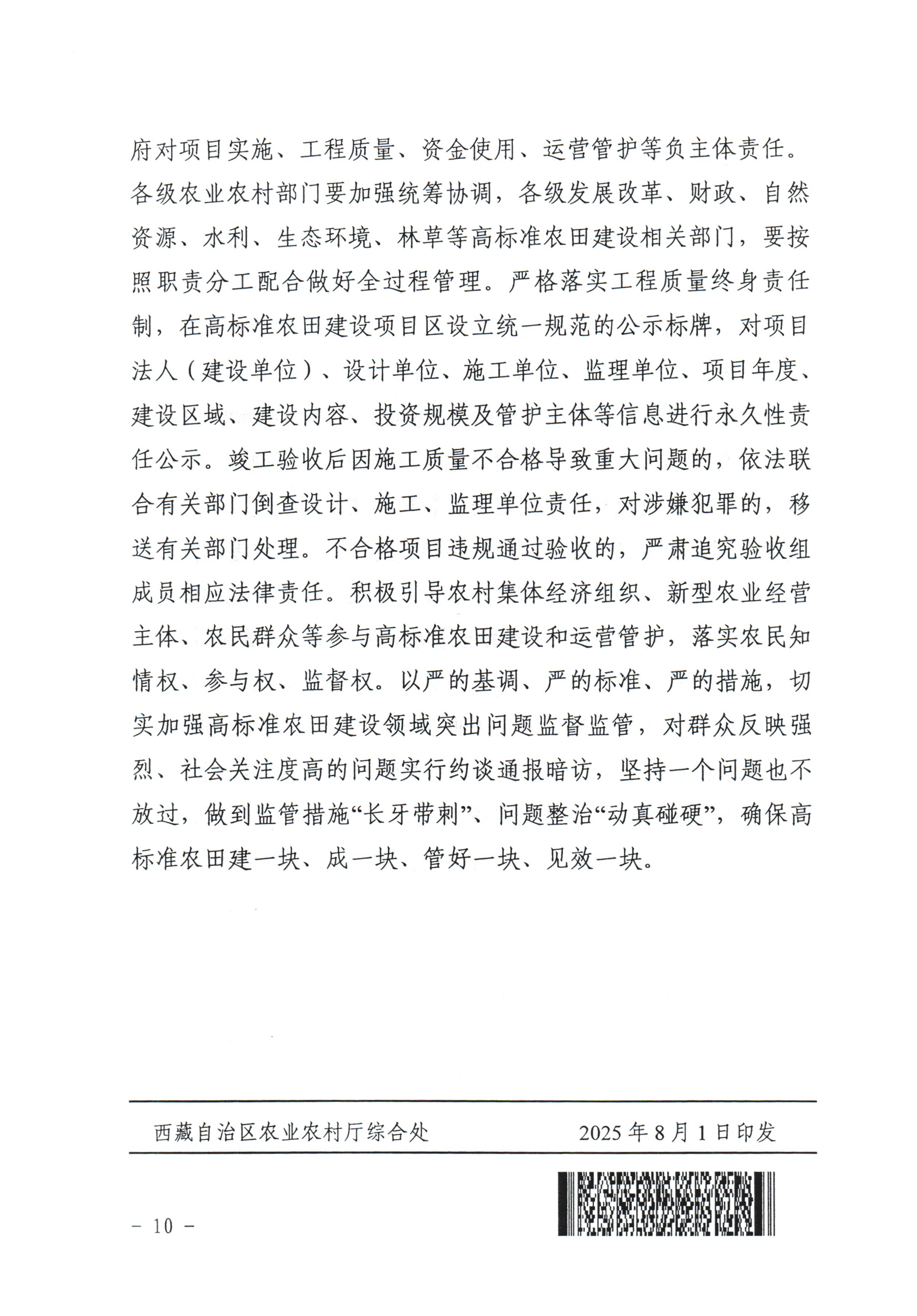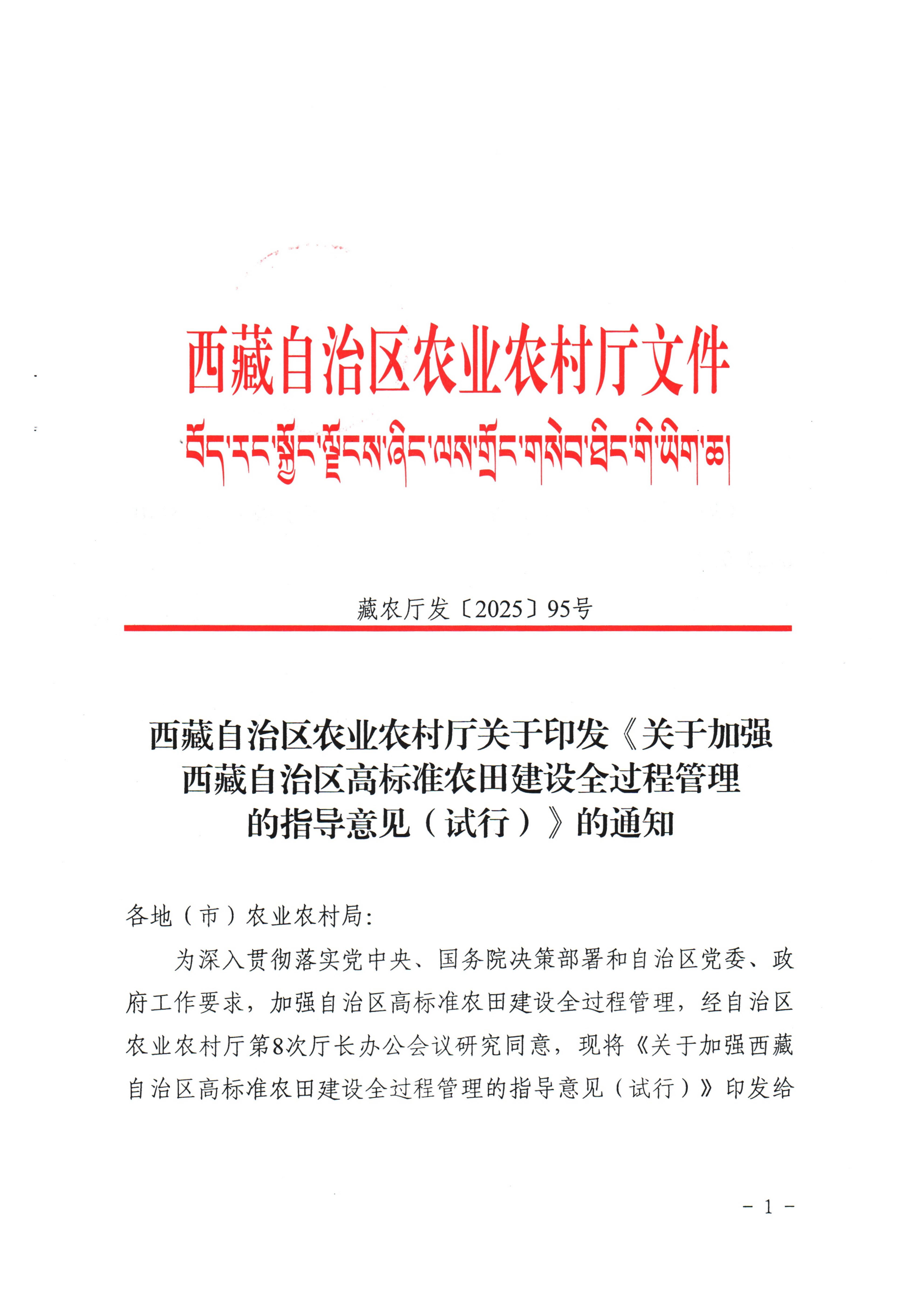 西藏自治区农业农村厅关于印发《关于加强西藏自治区高标准农田建设全过程管理的指导意见(试行)》的通知