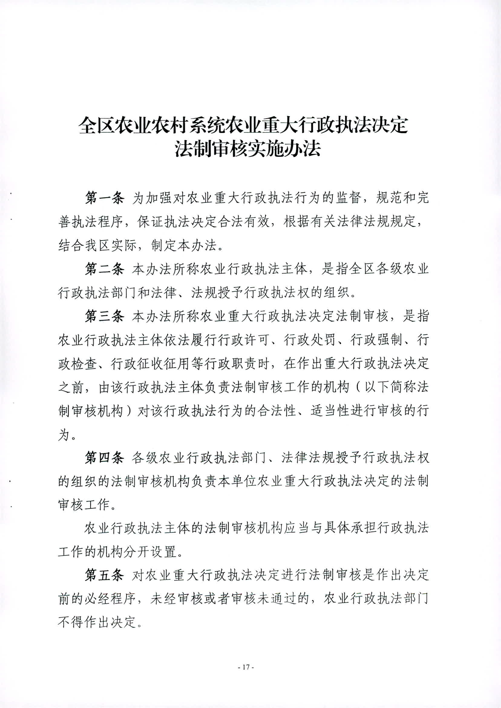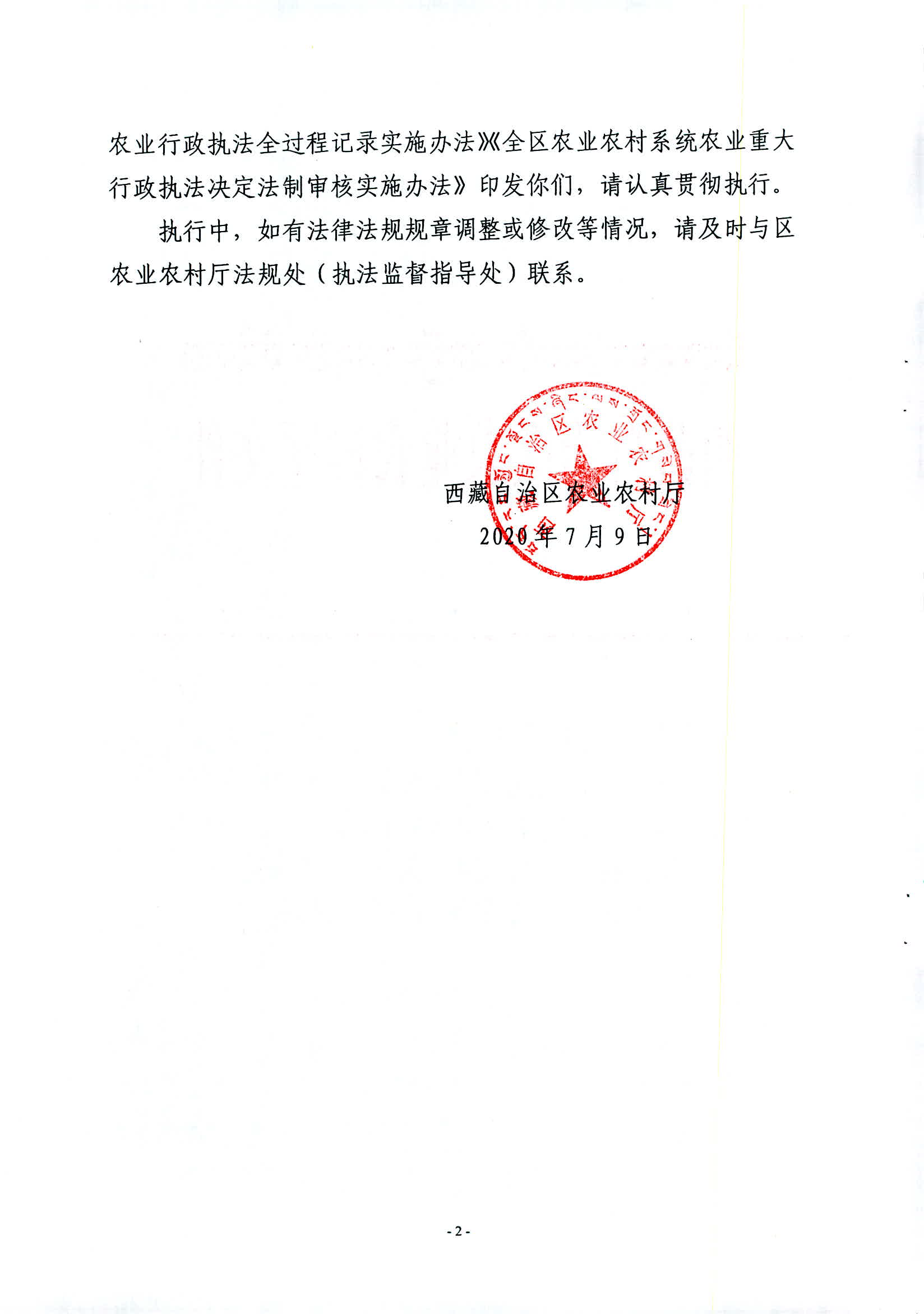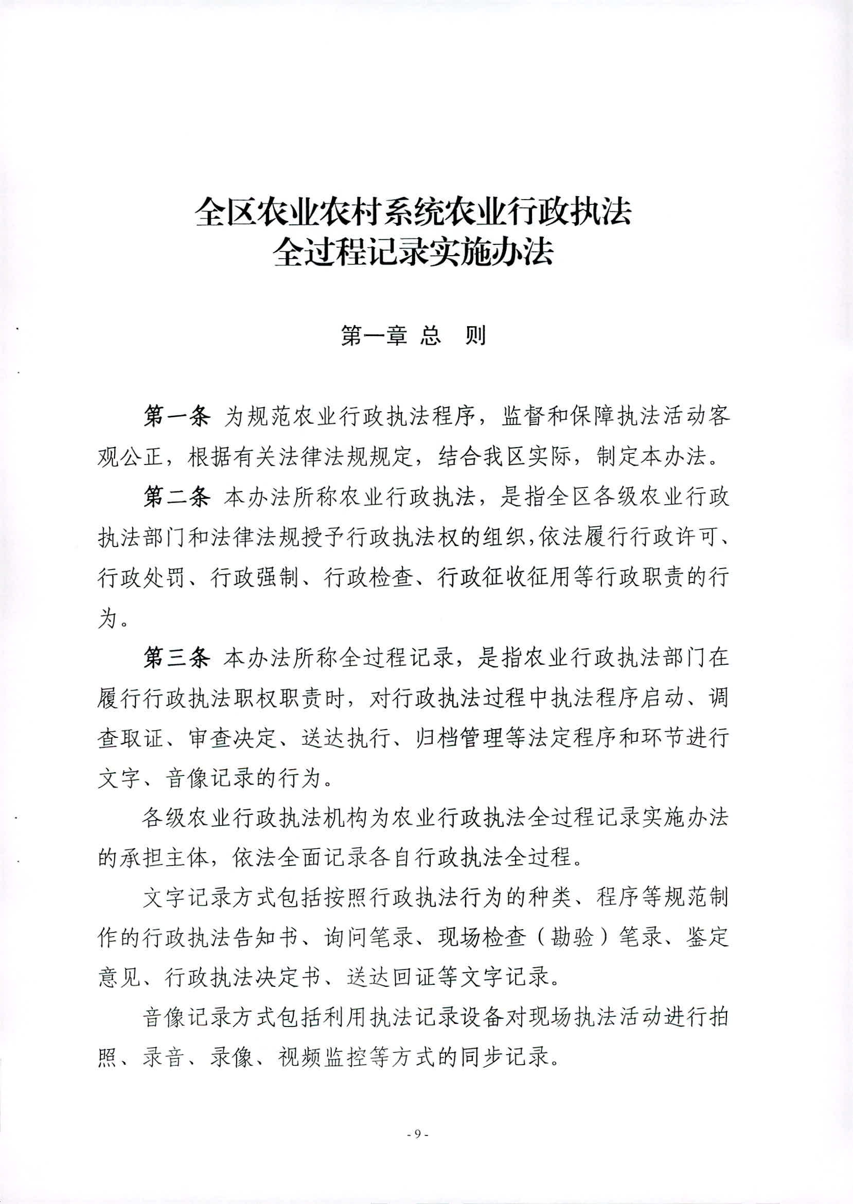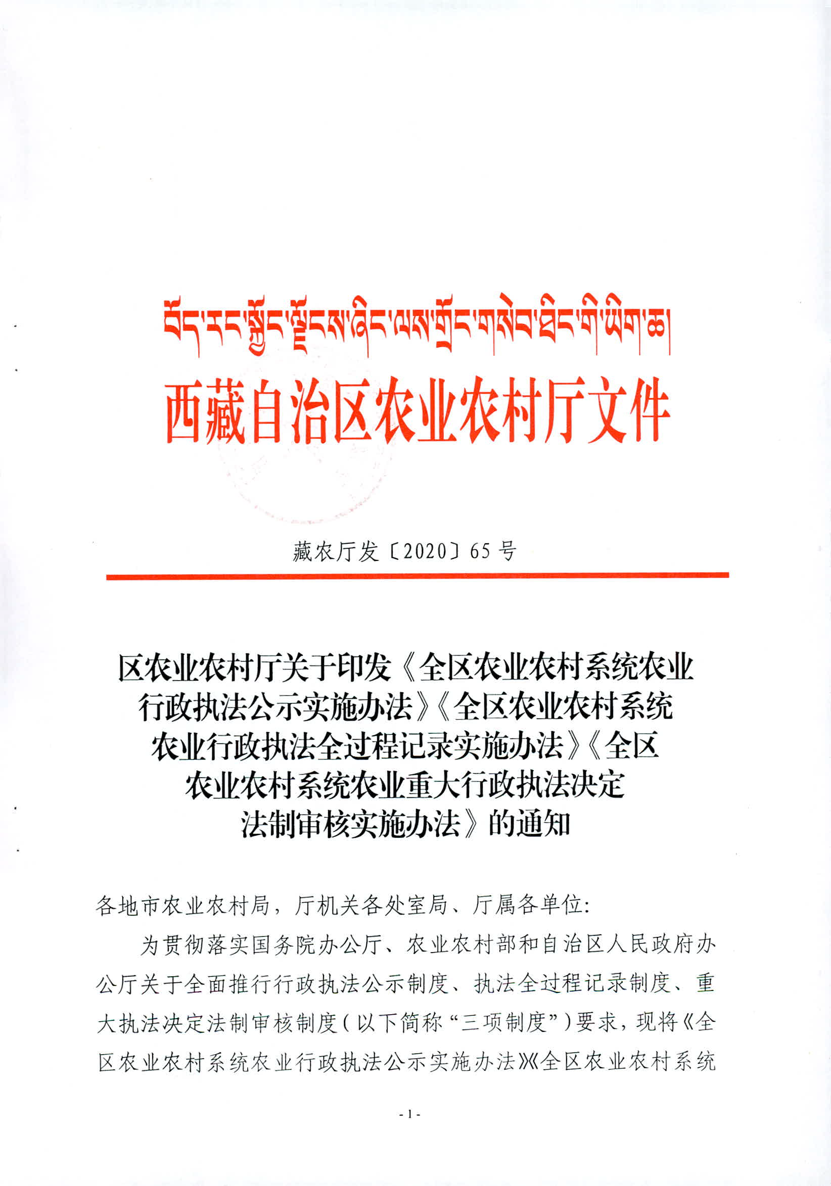 区农业农村厅关于印发《全区农业农村系统农业行政执法公示实施办法》《全区农业农村系统农业行政执法全过程记录实施办法》《全区农业农村系统农业重大行政执法决定法制审核实施办法》的通知