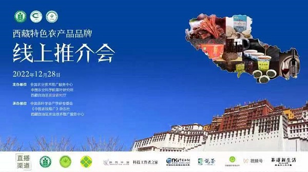 为深入贯彻落实党的二十大精神,切实把发展乡村特色产业,拓宽农民增收致富渠道,巩固脱贫攻坚成果,增强西藏内生发展动力落实落细,全国农技中心联合中国茶叶协会、西藏自治区农业农村厅于12月28日,共同主办了以青稞、茶叶、葡萄等为主的西藏特色农产品品牌线上专场推介会。直播推介会由全国农技中心园艺处处长周泽宇同志全程主持,西藏自治区农业农村厅党组成员、副厅长林木同志做致辞,国内在茶叶等方面的权威专家做产品推荐代言,西藏春光食品有限公司、西藏索朗兴青稞实业有限公司、察隅县雪山圣茗有限公司、林芝墨脱喜马拉雅圣茶、林芝易贡茶厂、芒康县藏香酒业、西藏芒康县藏东珍宝酒业有限公司、西藏洛扎县粉丝厂、西藏圣信工贸有限公司、西藏阳光庄园农牧资源开发有限公司10家企业代表做线上产品宣传。