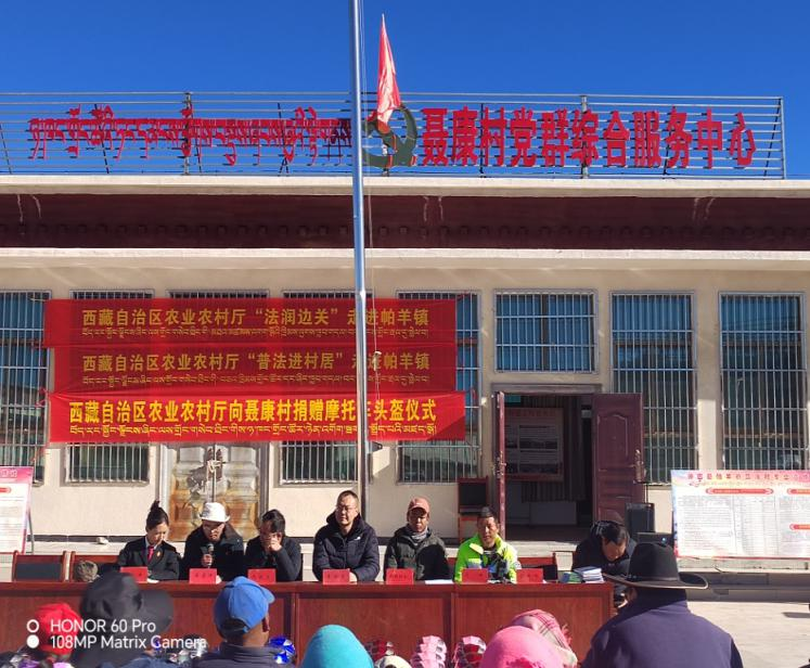 10月29日,区农业农村厅机关驻聂康村工作队开展了“法润边关”“普法进村居”走进帕羊镇普法宣传活动,仲巴县委副书记、驻村总领队李晓宇同志,县委常委、帕羊镇党委书记成晓亮同志出席活动仪式。