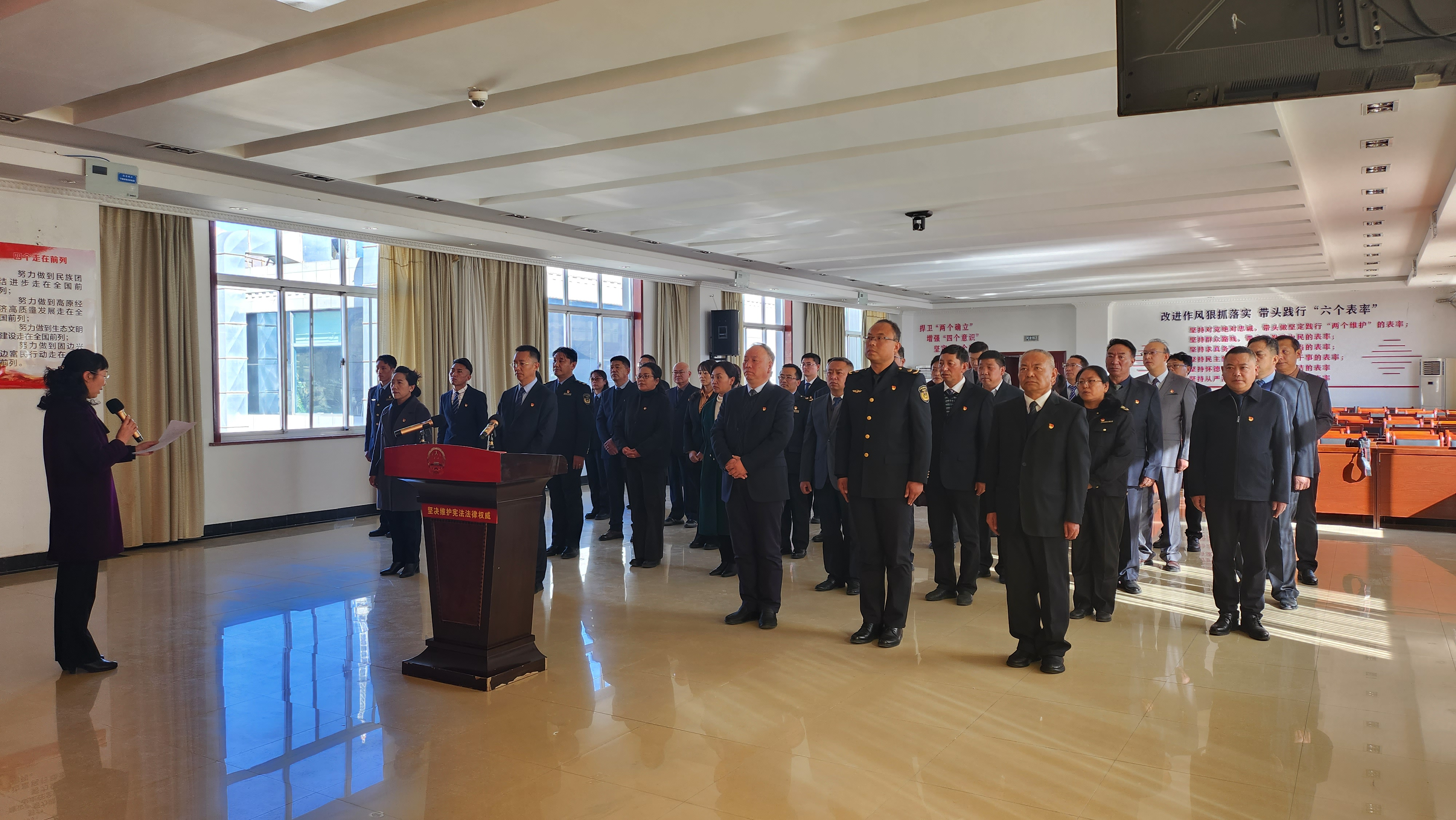 庄红翔同志代表厅党组对宣誓人员提出要求,一要提高站位,旗帜鲜明讲政治。要坚持党的全面领导,坚持以习近平新时代中国特色社会主义思想为指导,深入学习贯彻党的二十大精神,全面贯彻落实习近平法治思想,增强“四个意识”,坚定“四个自信”,做到“两个维护”,切实提高政治站位,把准政治方向,明确政治态度,严守政治纪律,永葆忠诚干净担当的政治品格,把党的领导落实到农业农村工作各方面。二要坚定立场,坚决维护宪法权威。要牢固树立宪法意识,带头尊崇宪法、学习宪法、遵守宪法、维护宪法、运用宪法,用自己的实际行动践行誓言,用法治的力量推动国家治理体系和治理能力现代化。要自觉在思想上、政治上、行动上同以习近平同志为核心的党中央保持高度一致,不断提高政治判断力、政治领悟力、政治执行力,不折不扣贯彻落实中央和自治区党委、政府的各项决策部署。三要勇于担当,切实履行法定职责。要以宪法为准绳,坚决贯彻落实习近平总书记视察西藏时的重要讲话、关于“三农”工作重要论述和新时代党的治藏方略,践行初心、担当使命,统筹做好农业农村各项工作,努力保持农牧业生产稳定加固,特色产业蓬勃发展,农牧区面貌日新月异,农牧民收入稳定增长的良好态势,为“十四五”推进农业农村工作奠定坚实基础。四要严于律己,自觉接受各方监督。要始终心怀对宪法和法律的敬畏,正确行使党和人民赋予的权力,牢记权为公器、权有边界、权受监督、权即是责。要坚持把纪律和规矩挺在前面,恪守宪法底线,依法依规用权,自觉约束言行,主动接受监督,严防以言代法、以权压法,在法治轨道上严明纪律,规范程序,改进作风,狠抓落实,营造风清气正的良好环境。