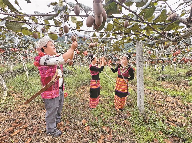 不仅如此,企业还定期请来农业专家培训,向村民传授标准化种植技术。走进猕猴桃种植基地,正在疏果的村民依青向记者展示新学的技术:“每株保留2到3个果最好,这样成熟后的果子果形大、甜度高,价格自然也高。”她家去年跟着基地学种植,8亩猕猴桃收入5万多元。以前只会种玉米的她,现在已经成了村里的技术能手。