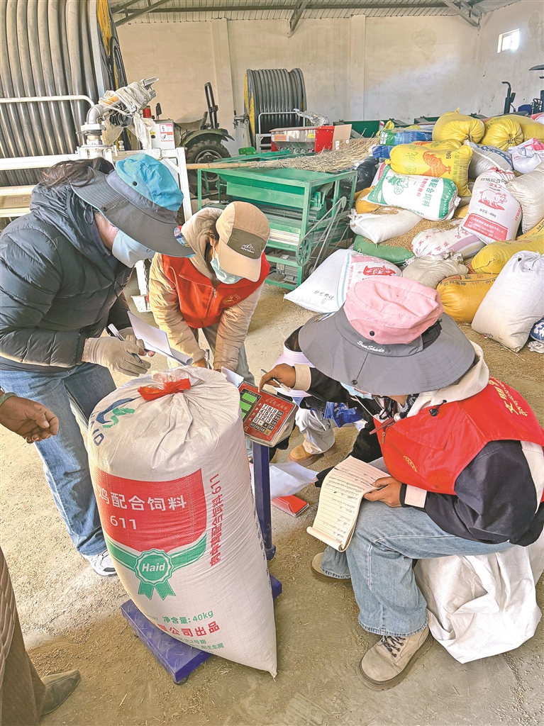 这些“尖兵”一边当起产量计量员,拉着专业秤具挨家挨户跑。在粮仓门口,新时代文明志愿者赤列平措蹲在地上调秤,搭档德吉拉珍拿着本子记录,每袋青稞都要称两遍才下笔。“这可是农户一年的血汗钱,半点不能马虎。”赤列平措擦着额头的汗说,他们针对独居老人、缺劳力家庭开展上门服务,光仁增伦珠家就精准计量了1806.6斤青稞,还帮老人把数字清清楚楚记在挂在墙上的账本里。