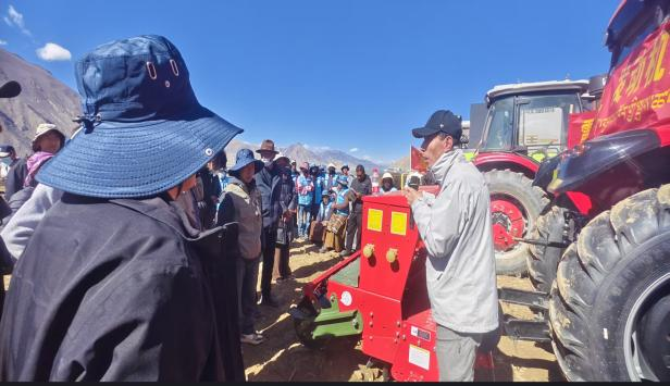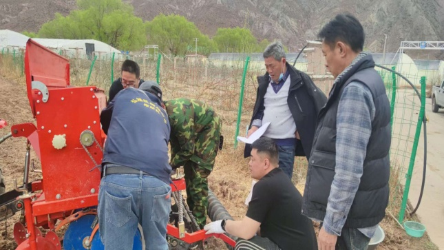 图2:昌都开展青稞播种机调试和人员培训