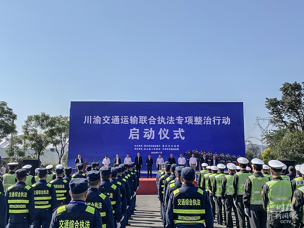 △11月11日,川渝两地首次开展交通运输联合执法,跨区域组建联合执法队伍。