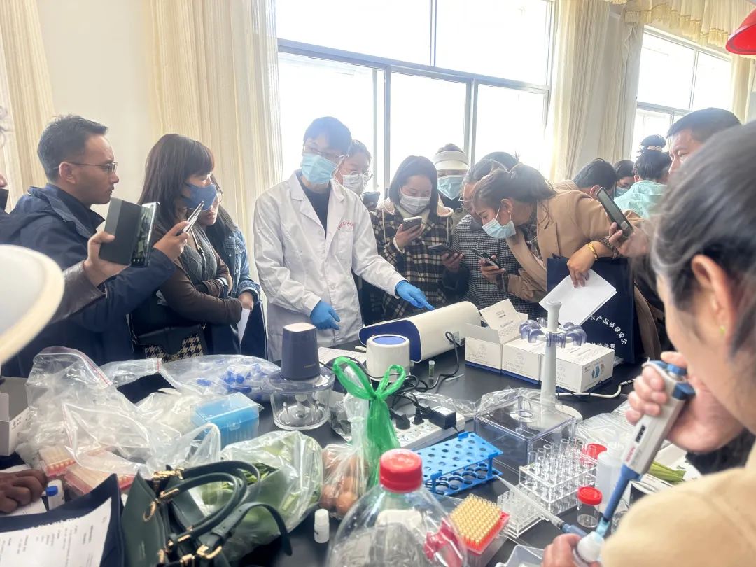 4月18日组织全体学员赴蔬菜生产基地开展例行监测和监督抽查实地抽样操作,“手把手”指导学员完成制样、前处理、数据分析、结果报告等检测流程。同时,现场观摩日喀则市农畜产品质量安全检验检测中心实验室,实地演示演练标准抽样方法。随后,组织参训人员逐一现场操作,积累农残快速检测实际操作经验。