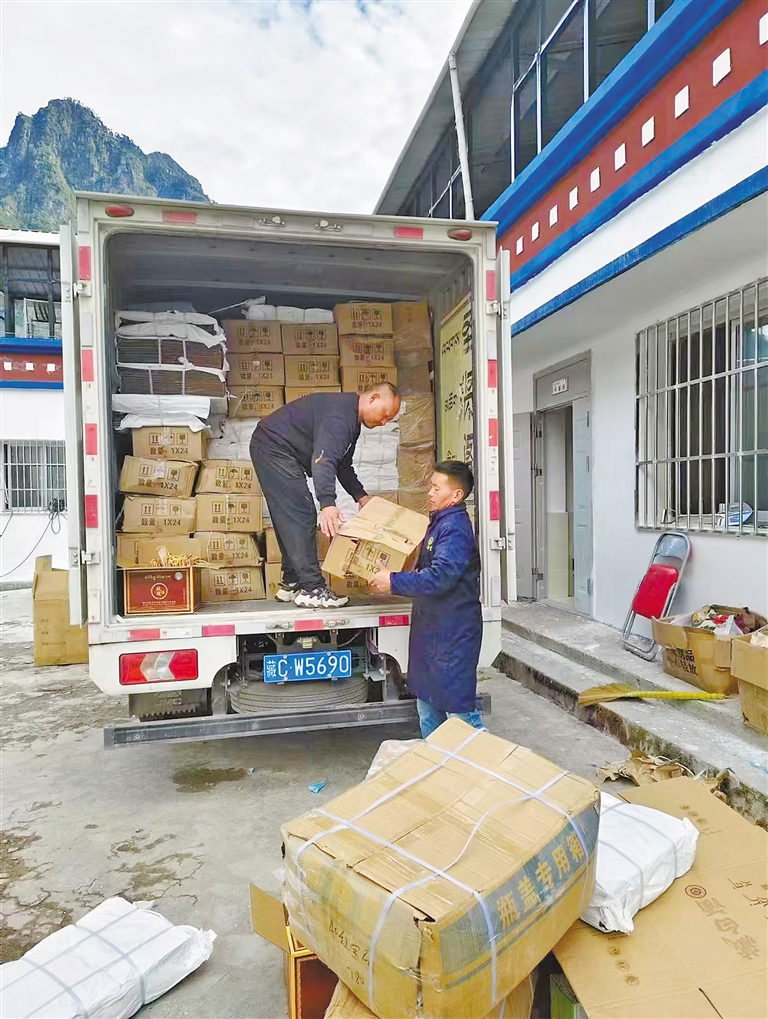 平措多吉将准备运输销售的扎日藏白酒装车。