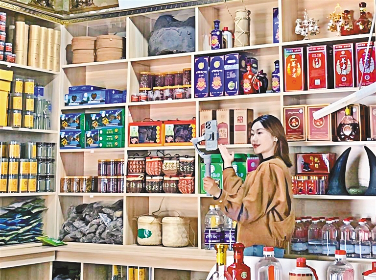 就在记者来到扎日乡采访的前一天,次仁康珠在家里的“扎日特产店”专门开设了一个房间并精心布置,开始尝试在网络平台直播带货。