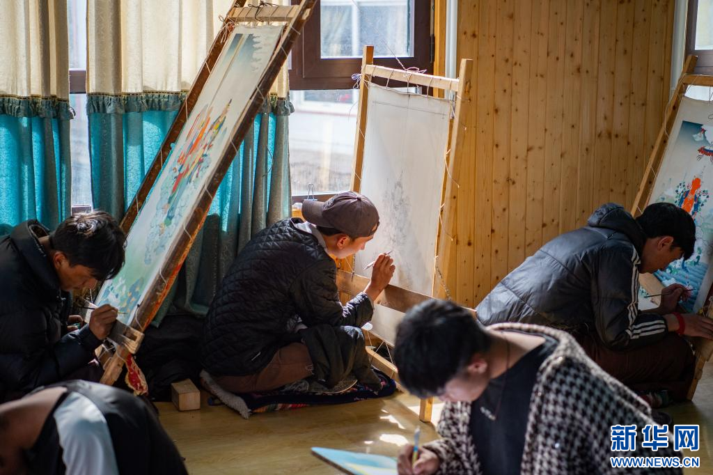 10月17日拍摄的卡若区嘎玛乡的一家唐卡画院。该乡2020年被国家文化和旅游部命名为“中国民间文化艺术之乡”。在嘎玛乡不少当地群众世代从事唐卡绘画、金属锻造、石刻等民族手工艺品制作,几乎家家有工匠、户户有传人。新华网 旦增努布 摄