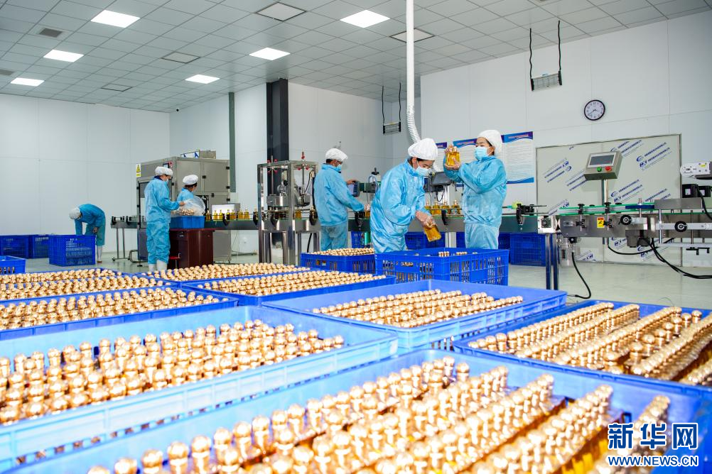 10月14日,左贡县夯达高原特色产品加工园工作人员在车间工作。该园区累计销售核桃油35万瓶,营业收入2800余万元;累计收购当地群众农产品180余万斤,实现群众增收900余万元,就业85人。新华网 旦增努布 摄