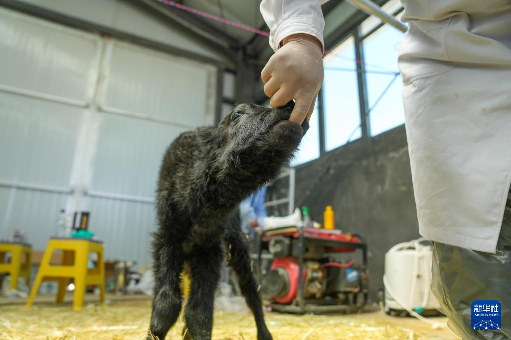 记者7月11日从西藏(当雄)金丝野牦牛繁育基地了解到,10日中午12时40分,该基地剖腹诞生了第一头克隆牦牛。这头新出生的克隆牛犊个头比正常新生牛犊较大,全身通黑,能够正常行走,目前身体状况良好。