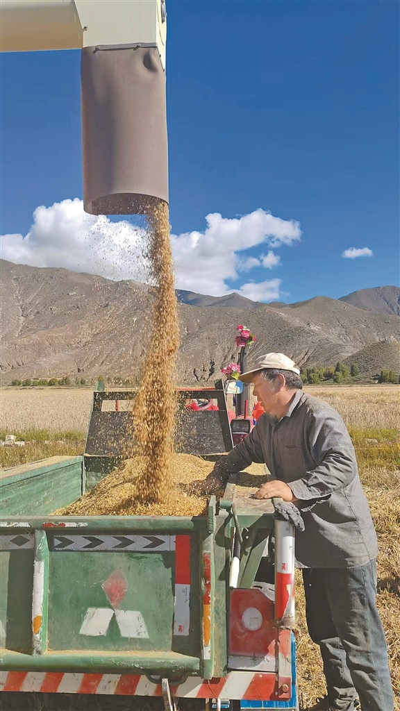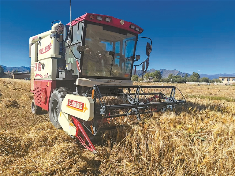 桑珠孜区东嘎乡色定村收割机助力秋收。