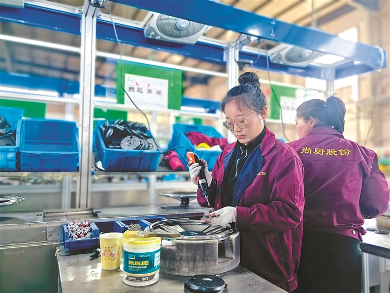 西藏尚厨炊具科技有限公司工人在加工产品。经济日报记者 代玲 摄