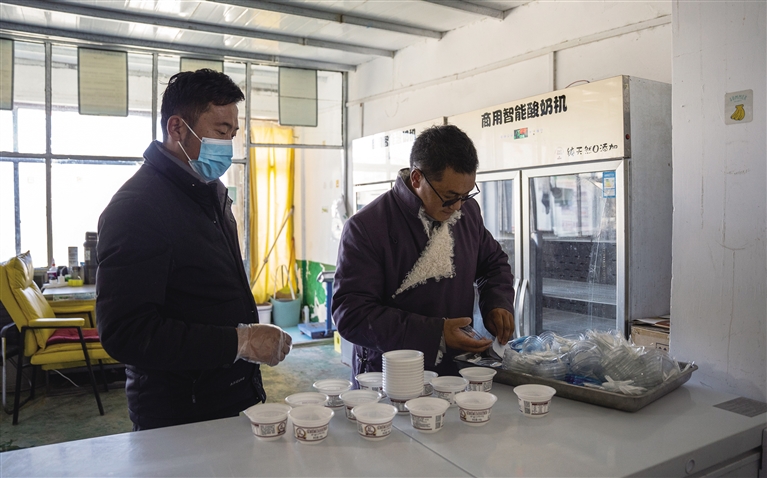 在深耕青稞产业的同时,普尼玛还不断拓展多元业务,奶制品加工便是其中的重要板块。在酸奶加工车间里,35岁的巴桑扎西正熟练地操作着现代化酸奶制作设备,搅拌、发酵、分装等一气呵成。巴桑扎西告诉记者,以前自己在家也会制作酸奶,但传统做法步骤多、耗时长、口感不稳定。如今有了专业设备,制作过程又快又省力,销量也十分可观。“以前我一直在外务工,2022年听说这里招工时,就赶紧来试试了。在这里工作离家近,收入稳定,做的也是自己擅长的事,特别满意。”巴桑扎西说。