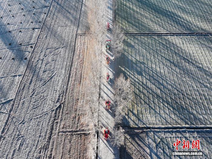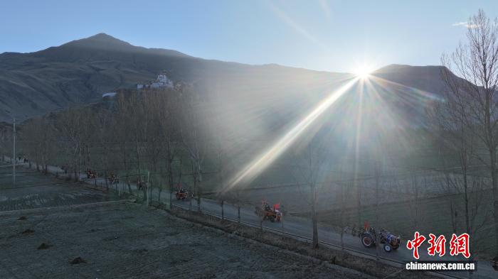 图为西藏山南市乃东区门中岗社区村民正前往春耕仪式现场。(无人机照片)中新社记者 贡嘎来松 摄