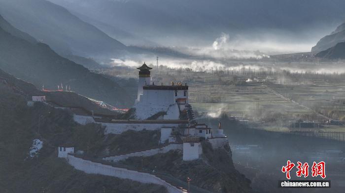 图为西藏山南市雍布拉康宫殿全景。(无人机照片)中新社记者 贡嘎来松 摄