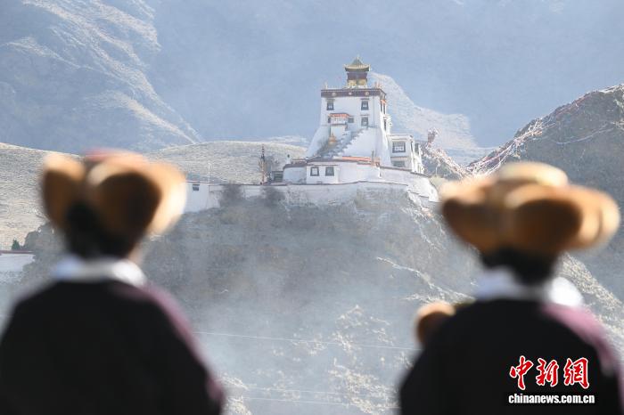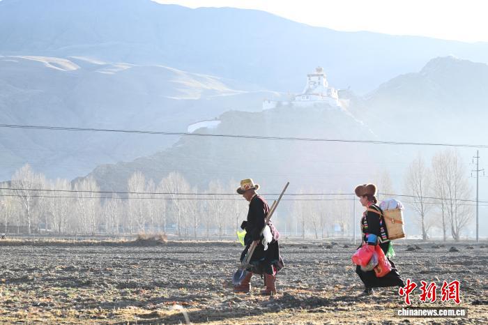 图为西藏山南市乃东区门中岗社区村民正前往春耕仪式现场。中新社记者 贡嘎来松 摄