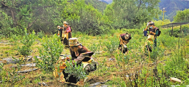 图为卡达村群众在蓝莓种植基地采摘蓝莓。通讯员 张淑萍 摄