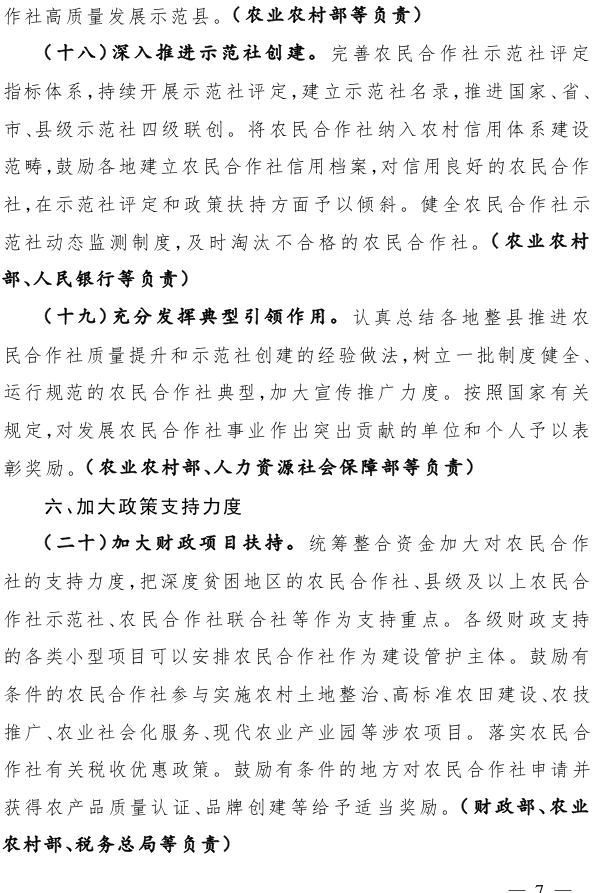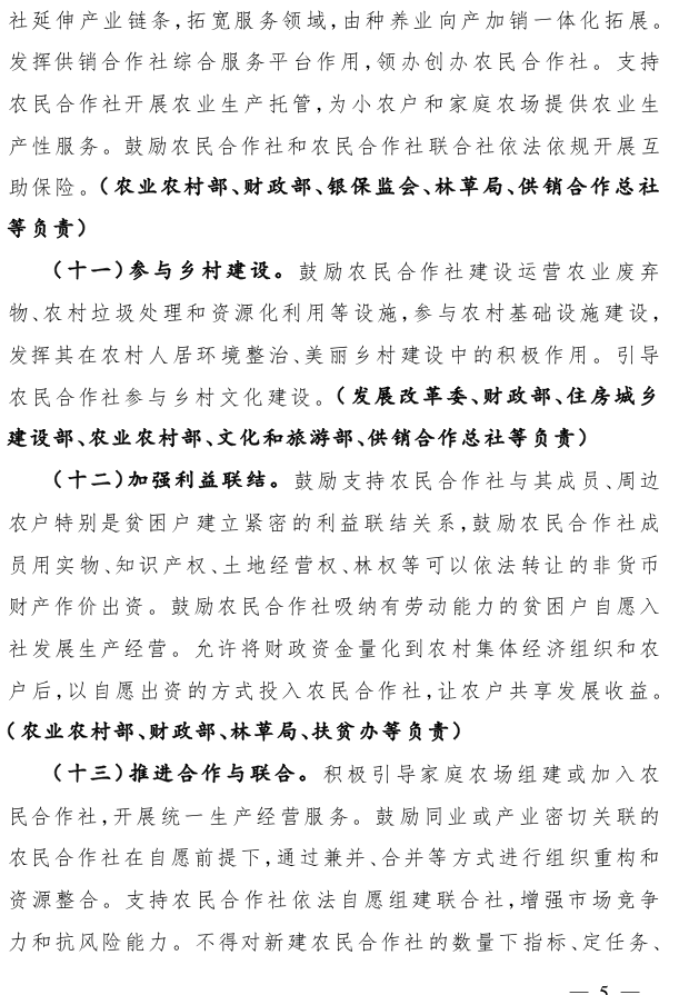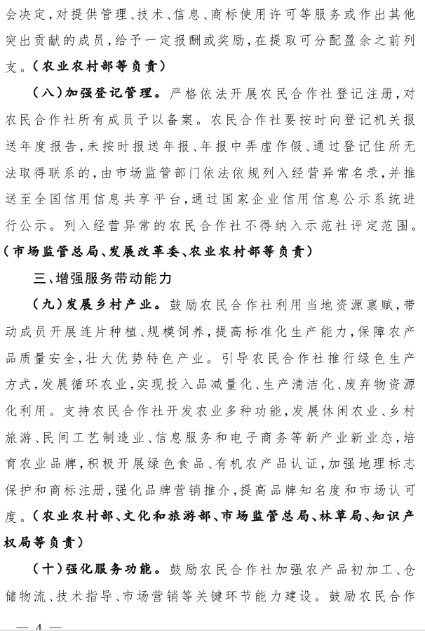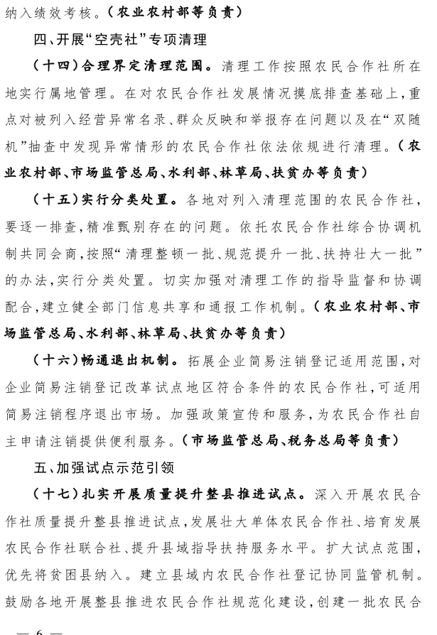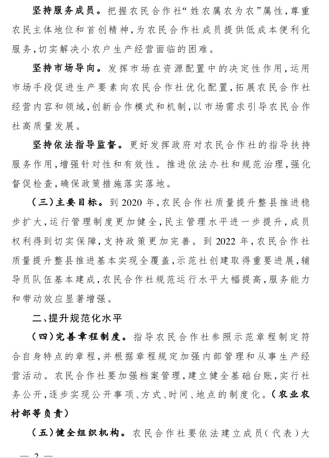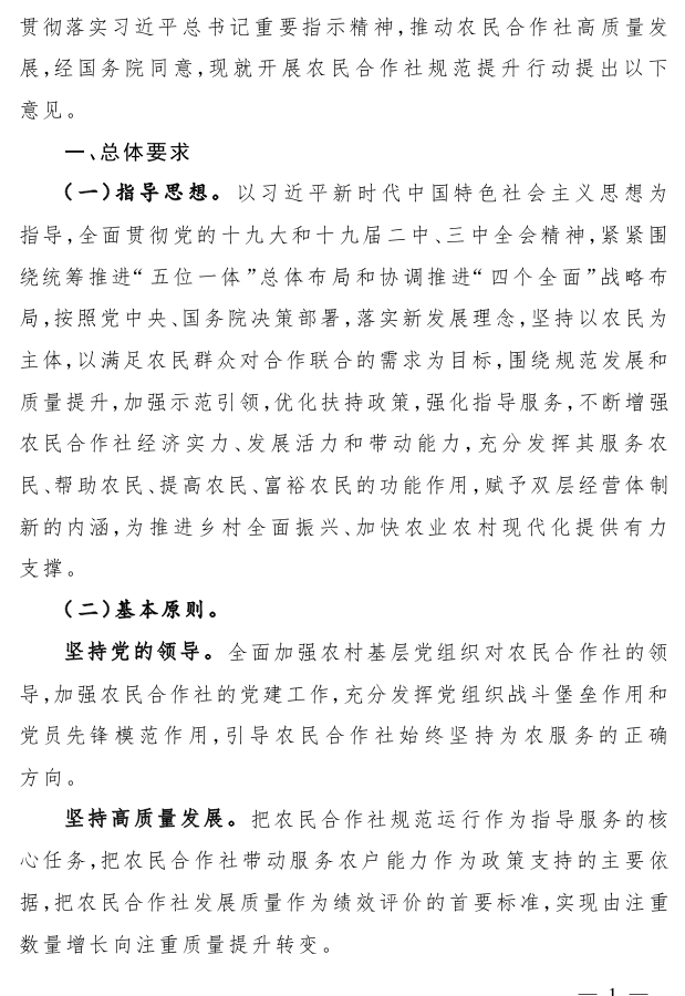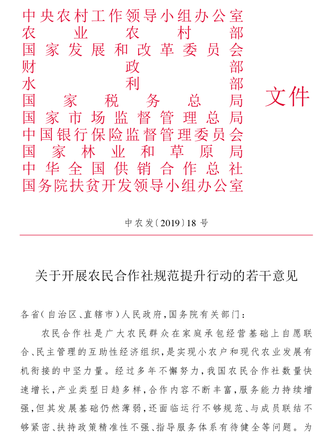 关于开展农民合作社规范提升行动的若干意见